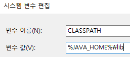 고급>환경변수>새로만들기로 다음과 같이 두 개를 입력한다.