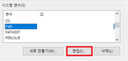 또 시스템 변수의 Path 를 찾아 편집을 누른다.